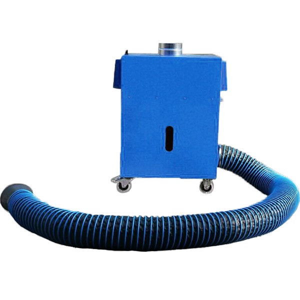 Verrijdbare nulemissie-unit met aanzuigslang en rubberen trechter voor aansluiting op de uitlaat van het voertuig. De roetmeetmodule staat opgesteld in de nulemissie-unit waardoor geanalyseerde uitlaatgassen via de testmodule worden afgevoerd. Bovenop de nulemissie-unit bevindt zich de gasafvoeropening van Ø 180 mm.