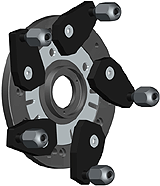 Deze opspanset van het merk Haweka is geschikt voor dichte velgen. Het bestaat uit een basisplaat met drie centreerringen: een van 55 mm, een van 58 mm en een van 65 mm.