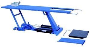 Dit is een pneumatische heftafel voor motorfietsen. Het achterstuk is uitneembaar, zodat u makkelijk een achterwiel kunt demonteren.