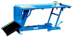Dit is een heftafel voor motorfietsen. Het achterstuk is uitneembaar, zodat u makkelijk een achterwiel kunt demonteren. Daarnaast heeft het een voetpedaal met een hydraulische hefcilinder.